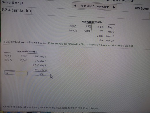 Solved Calculate The Accounts Payable Balance Enter The Chegg Com